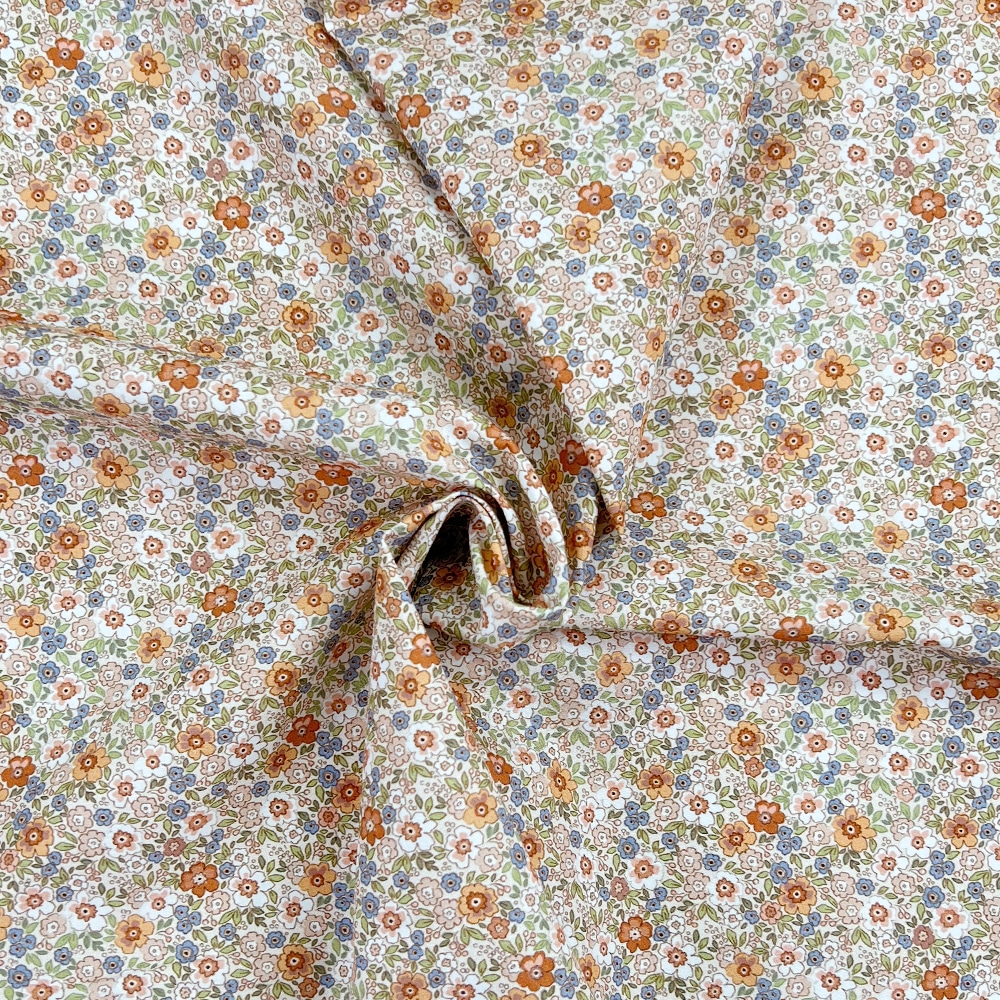 Popeline – Mini-Blümchen Kupfer/Ockergelb – Natur