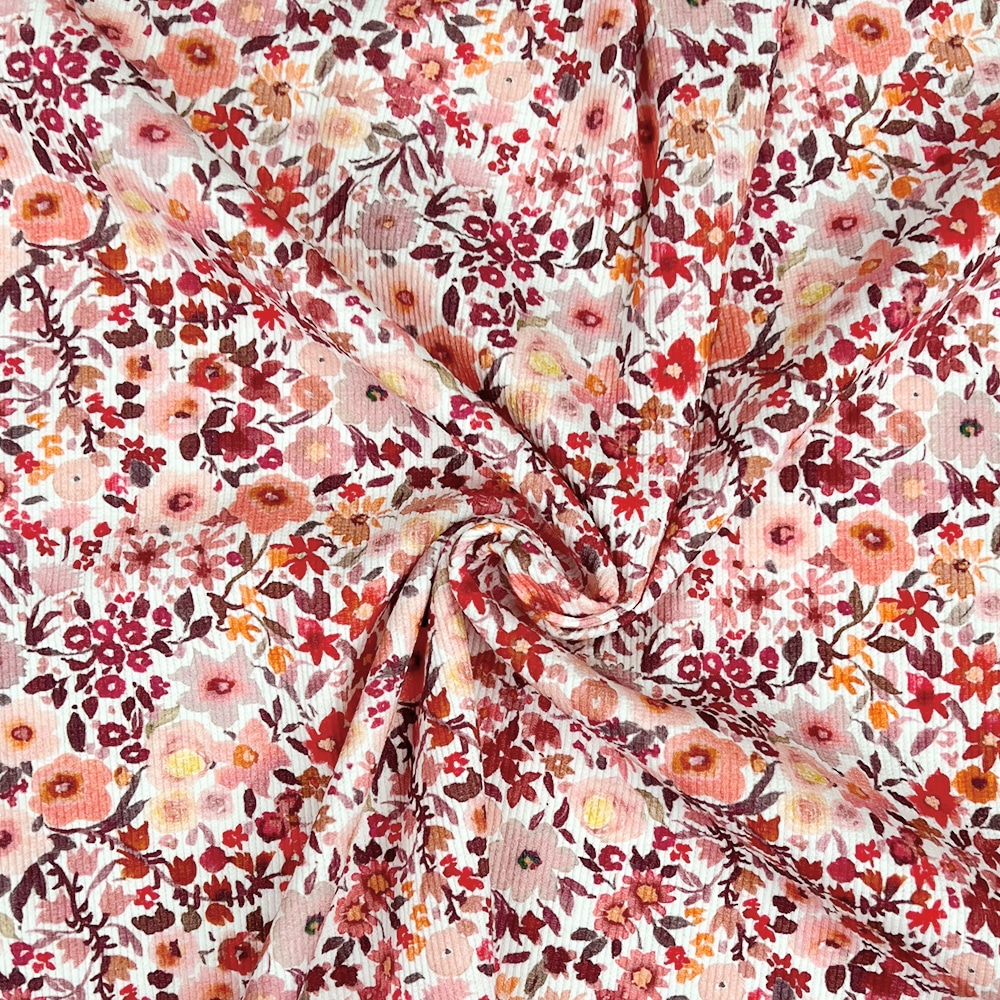 Rippenjersey – Zarte Blümchen – Cremeweiß – Reste