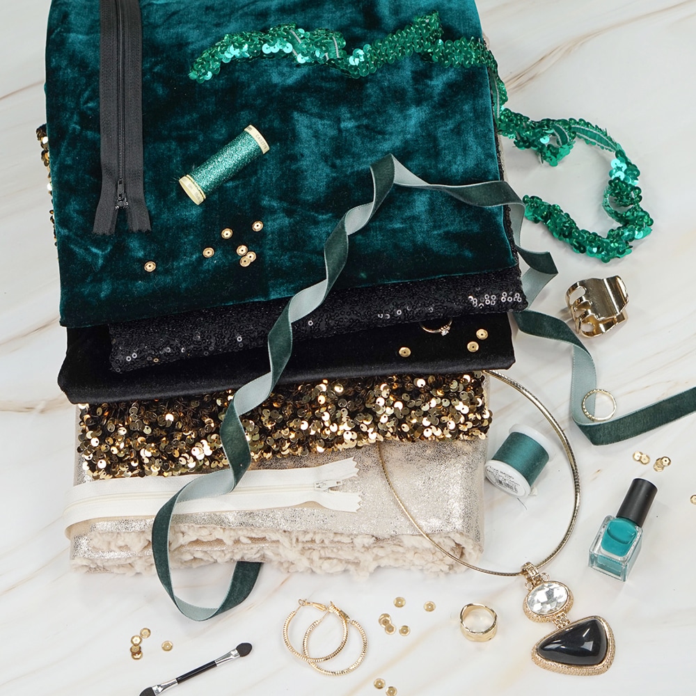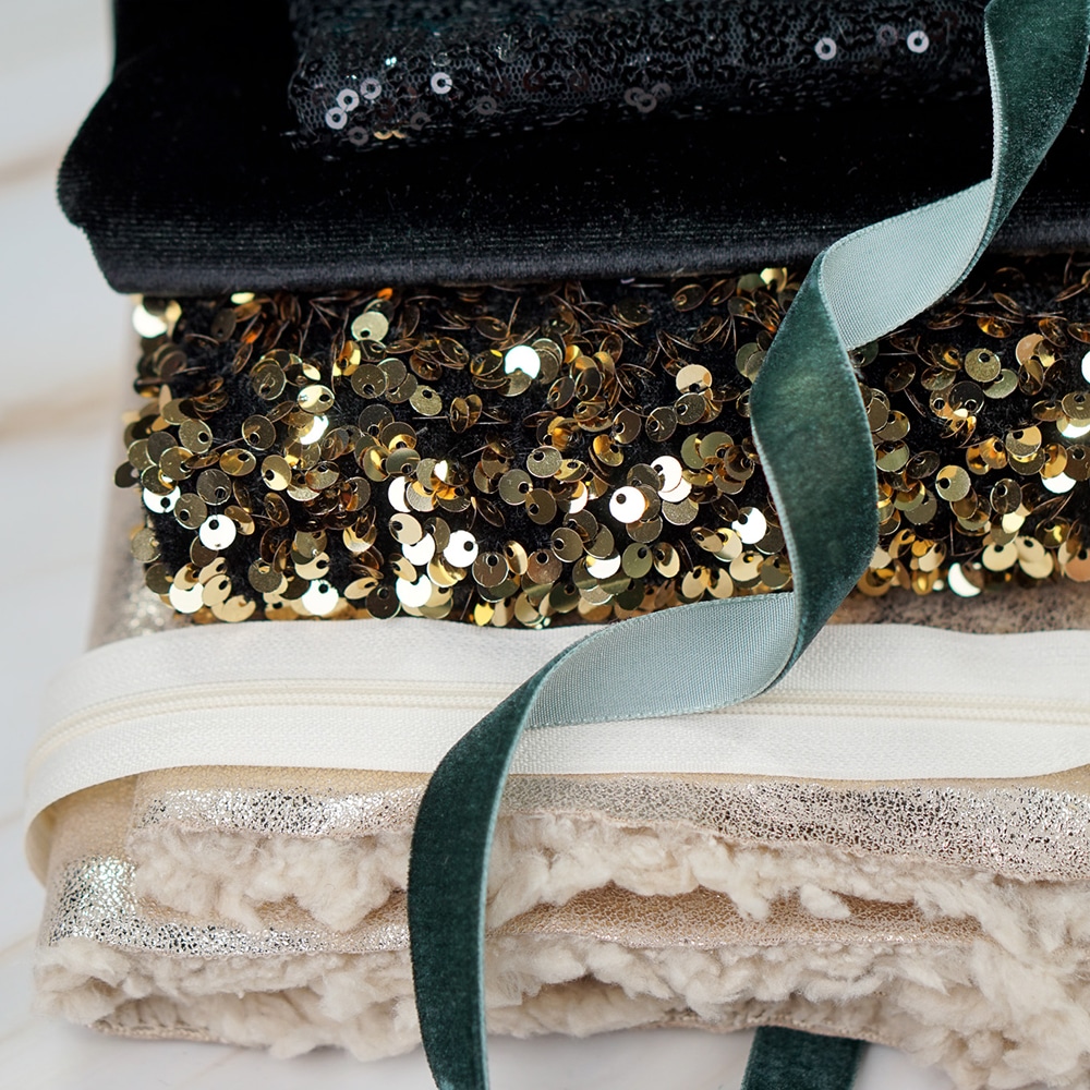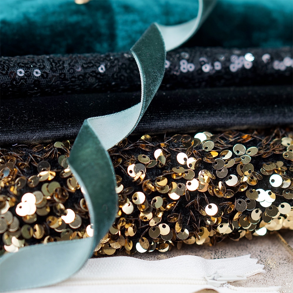 Pailletten Samtjersey – Gold/Schwarz