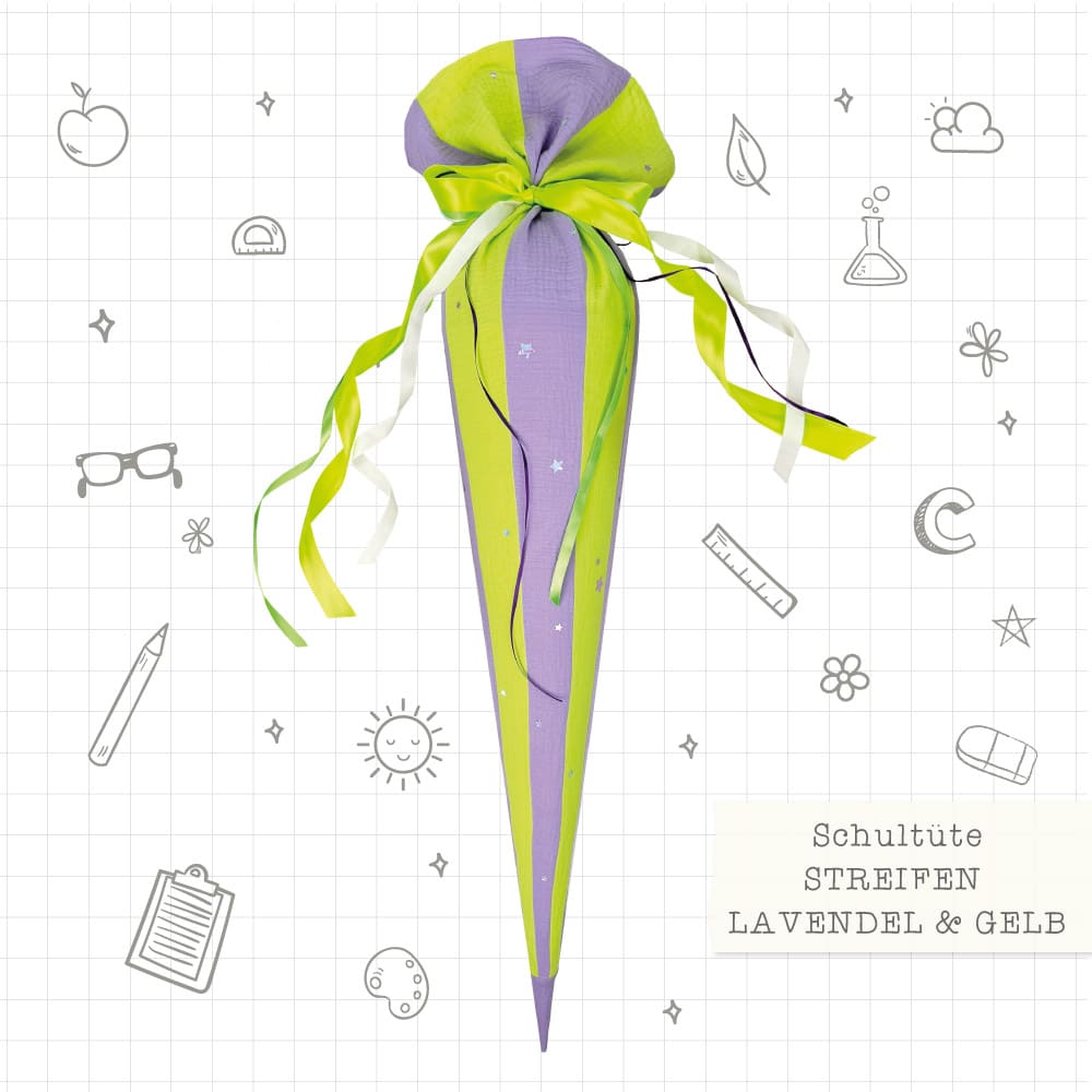 Schultüten Paket – Streifen Lavendel & Gelb