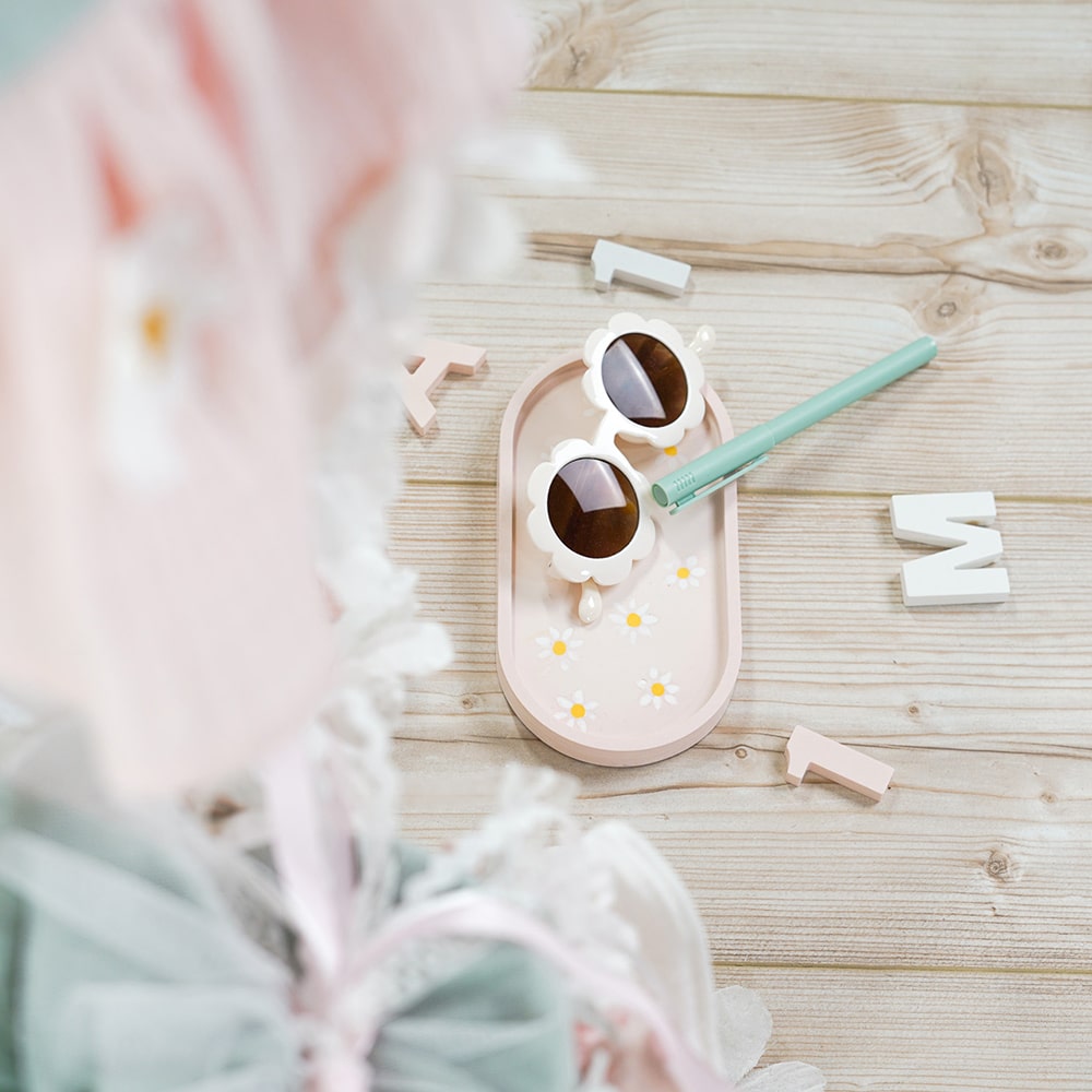 Bringt blumige Frische in euer Zuhause: mit unseren verschiedenen Gießformen gestaltet ihr individuelle Homeaccessoires in Buchstaben- & Schalenform. Das zarte Gänseblümchenmuster verleiht den gegossenen Schalen einen besonderen Look. Kombiniert gelbe und fuchsiafarbene Farbpigmente mit weißem Gießpulver zu einem sanften Lachston. Den sanften Altmintton kreiert ihr ebenfalls mit weißem Gießpulver und etwas Pinienfarbpigment. So gestaltet ihr das Gänseblümchenmotiv: 1. Mischt etwas Gießpulver mit Wasser & goldgelbem Farbpigment an und tragt kleine Punkte mit einem spitzen Pinsel (Größe 2) in eurer Silikonform auf. Lasst das Ganze trocknen. 2. Mischt im Anschluss ein bisschen weiße Gießmasse an. Tragt auch diese mit einem spitzen Pinsel (Größe 2) in Form von Blütenblätter auf. Mischt die Masse etwas dicker an, damit die Blüten nach dem Gießen deutlich sichtbar sind. Lasst das Ganze wieder trocknen. 3. Wenn auch die Blütenblätter getrocknet sind, gießt ihr jeweils die farbige Masse in die Form. Tipp: Die farbige Gießmasse nicht zu fest anrühren, damit diese sich gut um die Blumen verteilt und keine kleinen Luftbläschen entstehen. Ein passendes liebevoll abgestimmtes Outfit und eine Schultüte findet ihr hier: Mit diesem Paket kann euer Gieß-Projekt auch gleich losgehen. Natürlich könnt ihr aus unserem Shop auch viele andere Materialien kombinieren und eure eigenen Ideen verwirklichen. Falls ihr Fragen zur Umsetzung habt kontaktiert uns gern unter: info@diy-stoffe.de Gefallen euch unsere selbstgebastelten Musselin Daisies? Wie ihr diese herstellt könnt findet ihr in unserem kostenlosen PDF der Schultüte. Hinweise: