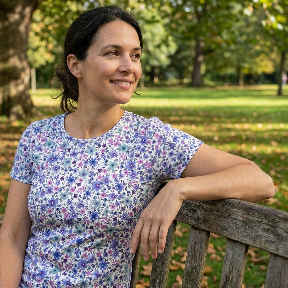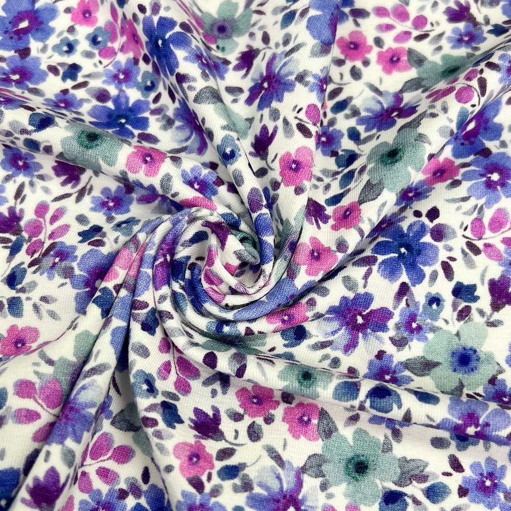 Single jersey – Lavendel Blau Blüten – Warmweiß