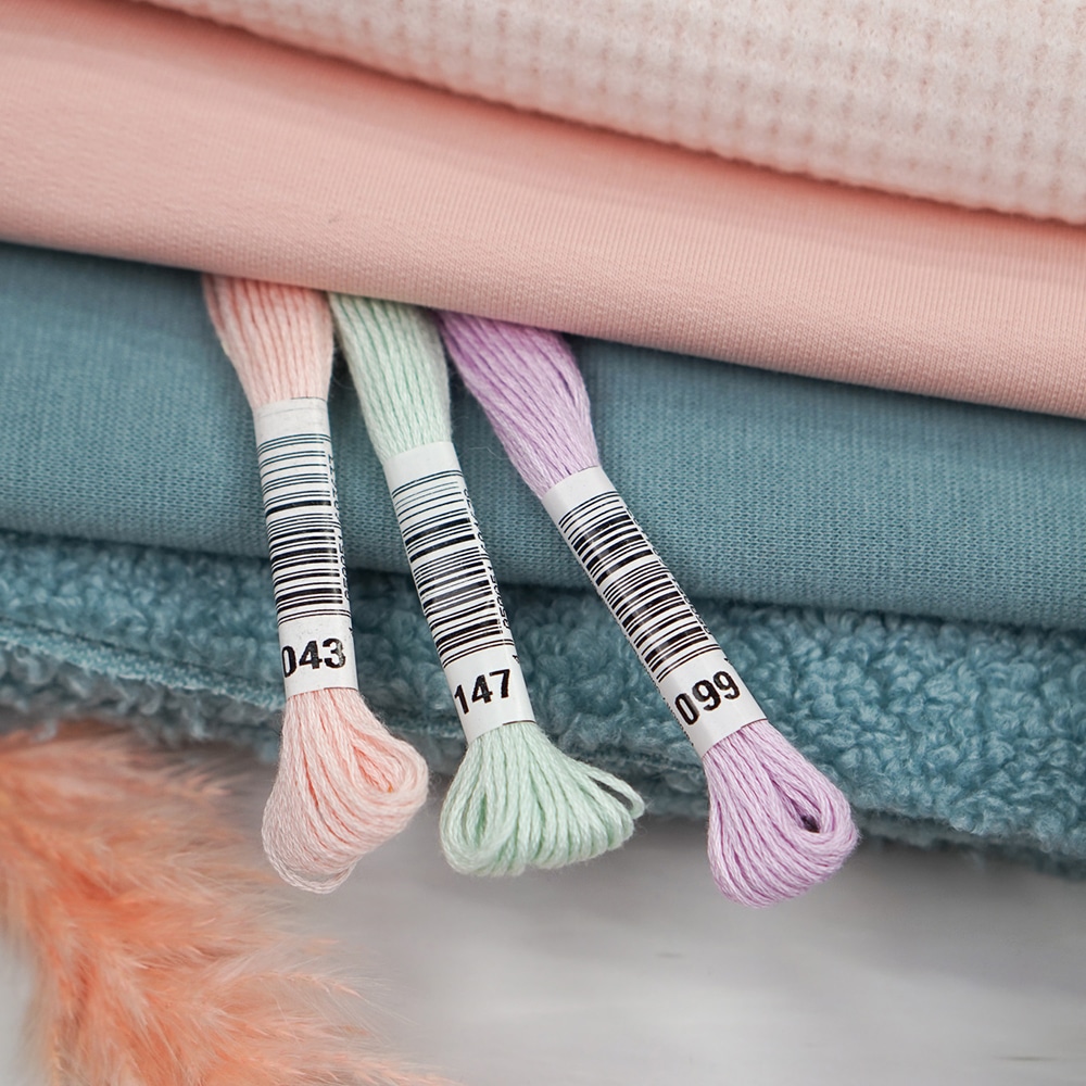 - Den Sticktwist könnt ihr auf vielen verschiedenen Stoffen verwenden, wie zum Beispiel auf zartem Tüll, klassischem T-Shirt- oder Sweatshirtstoff, wie Single Jersey oder French Terry, kuscheligem Strickstoff oder dickem Walk.