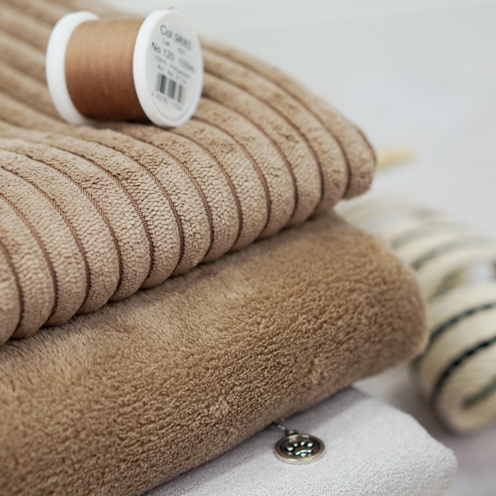- Stoffempfehlungen: Velvet Breitcord, Deko-Bouclé, Canvas, Velvet strukturiert, Steppstoffe, Softshell oder Dekostoffe
