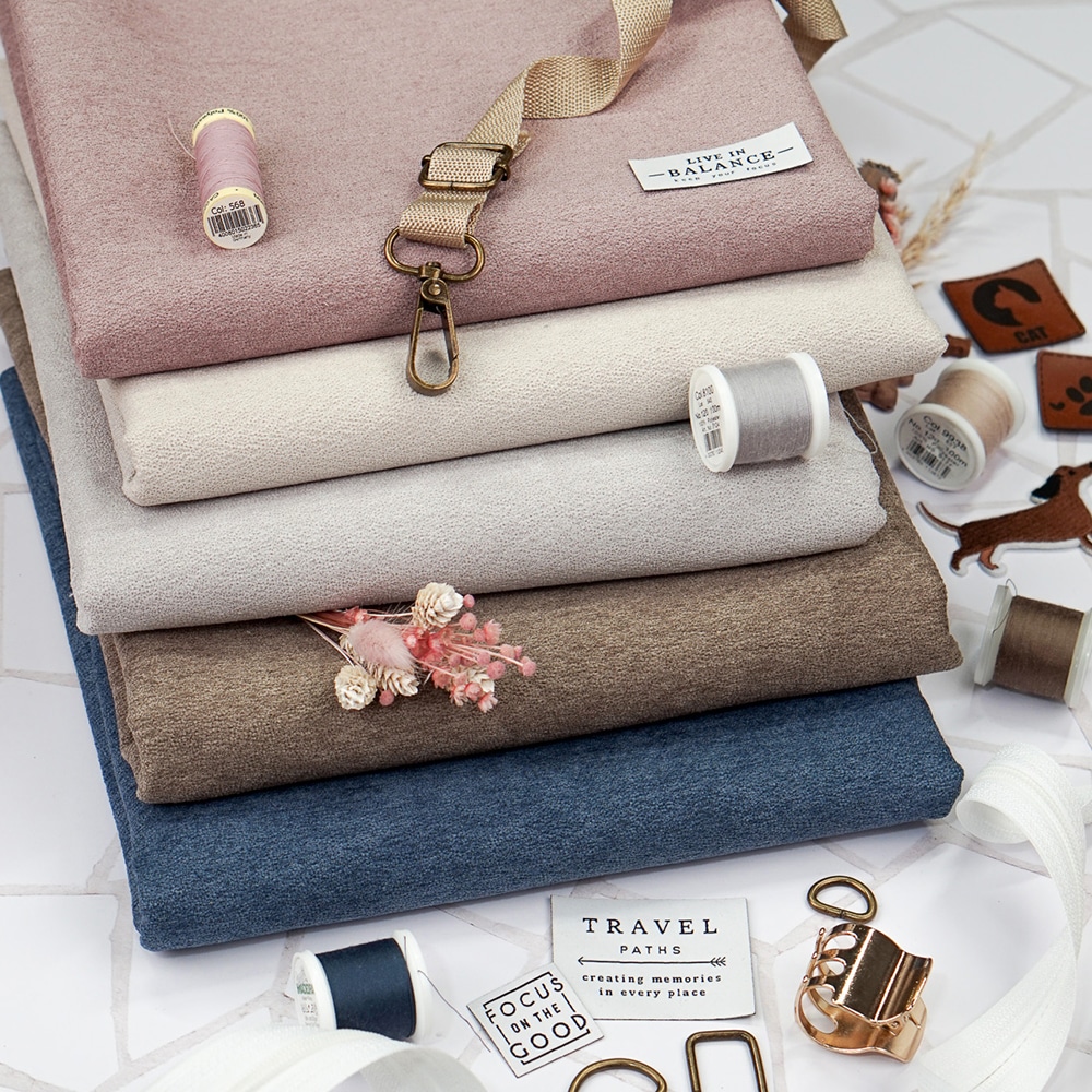 Dieser Velours Dekostoff eignet sich für viele verschiedene DIY–Nähprojekte. Die rechte Stoffseite erinnert etwas an Wildleder in Haptik und Optik, die linke Stoffseite besteht aus einem weichen Vlies. Trendige Home-Accessoires und Möbelbezüge können aus dem langlebigen und unempfindlichen Stoff gezaubert werden. Dieser samtige Stoffe verfügt über eine sehr hohe Abriebfestigkeit (mehr als 100.000 Scheuertouren), weshalb er bestens für Sofas, Kissen, Stuhl- & Sesselbezüge oder Hundekörbchen genutzt werden kann. Aber auch schöne Taschen, Kulturbeutel, Handytaschen und sogar Bekleidung wie Mäntel und Westen können aus dem tollen Stoff entstehen.