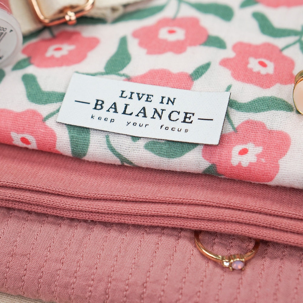 Weblabel “Live in Balance” – 55 x 20 mm aufbügelbar – 2 Stück