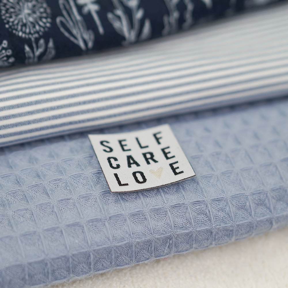 Weblabel “Self care love” – 30 x 30 mm aufbügelbar – 3 Stück
