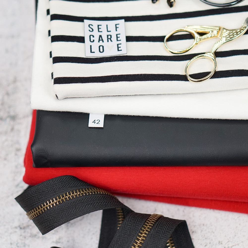 „Self care love“ – mit diesem Label setzt ihr auf euren selbstgenähten Unikaten ein cooles Statement.