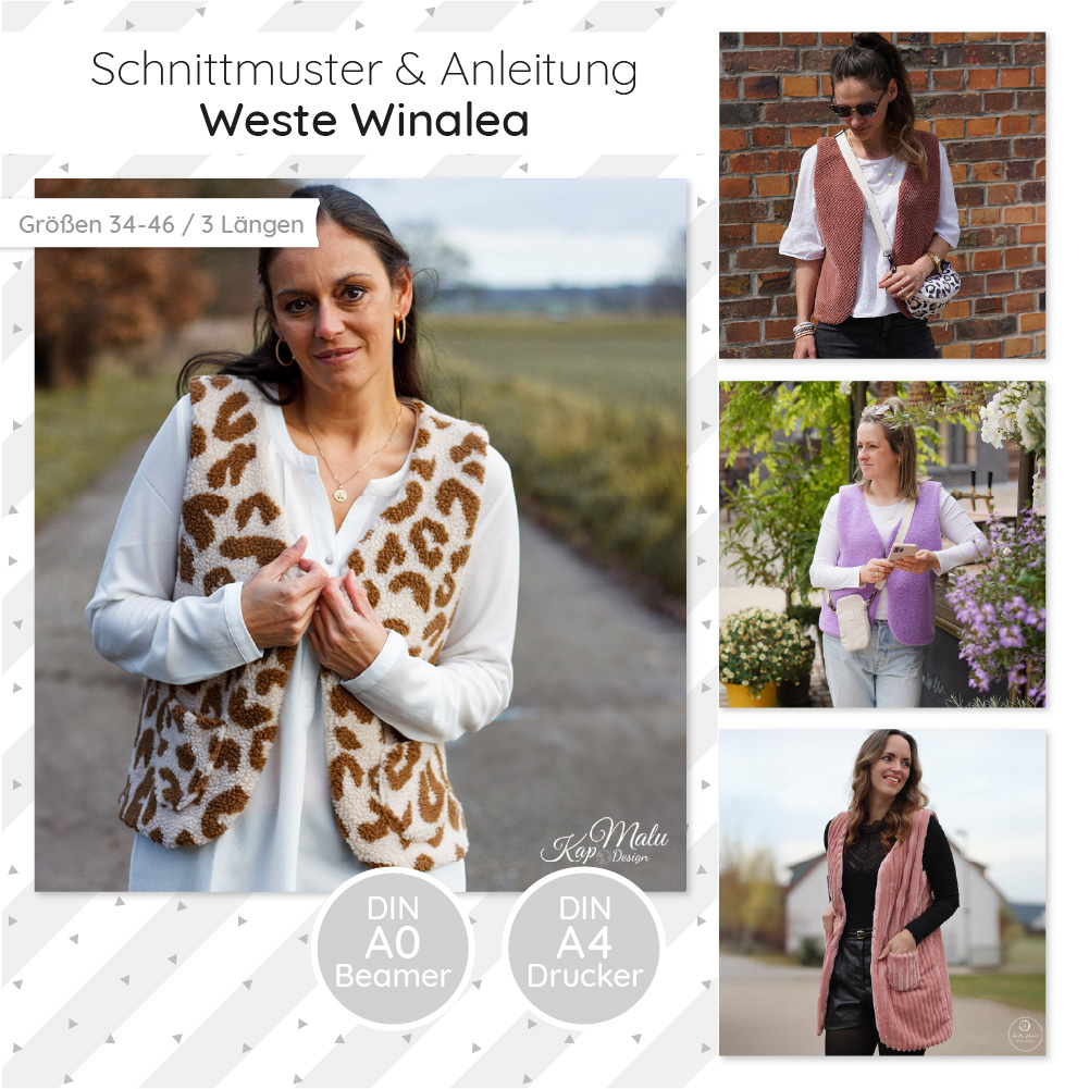 Der Name “Weste Winalea” bezieht sich auf das Schnittmuster. Das von euch fertig genähte Kleidungsstück kann von euch beliebig benannt werden.