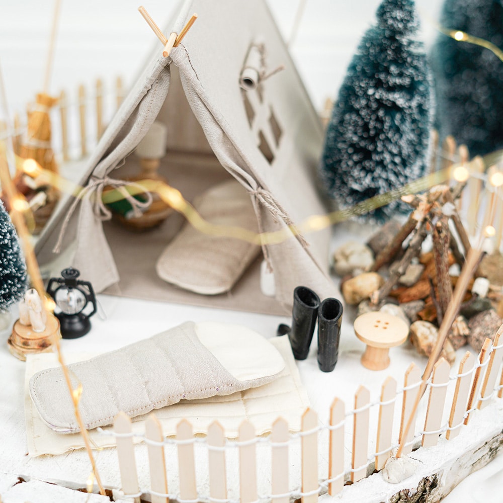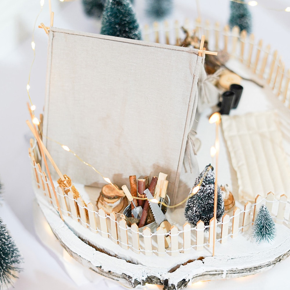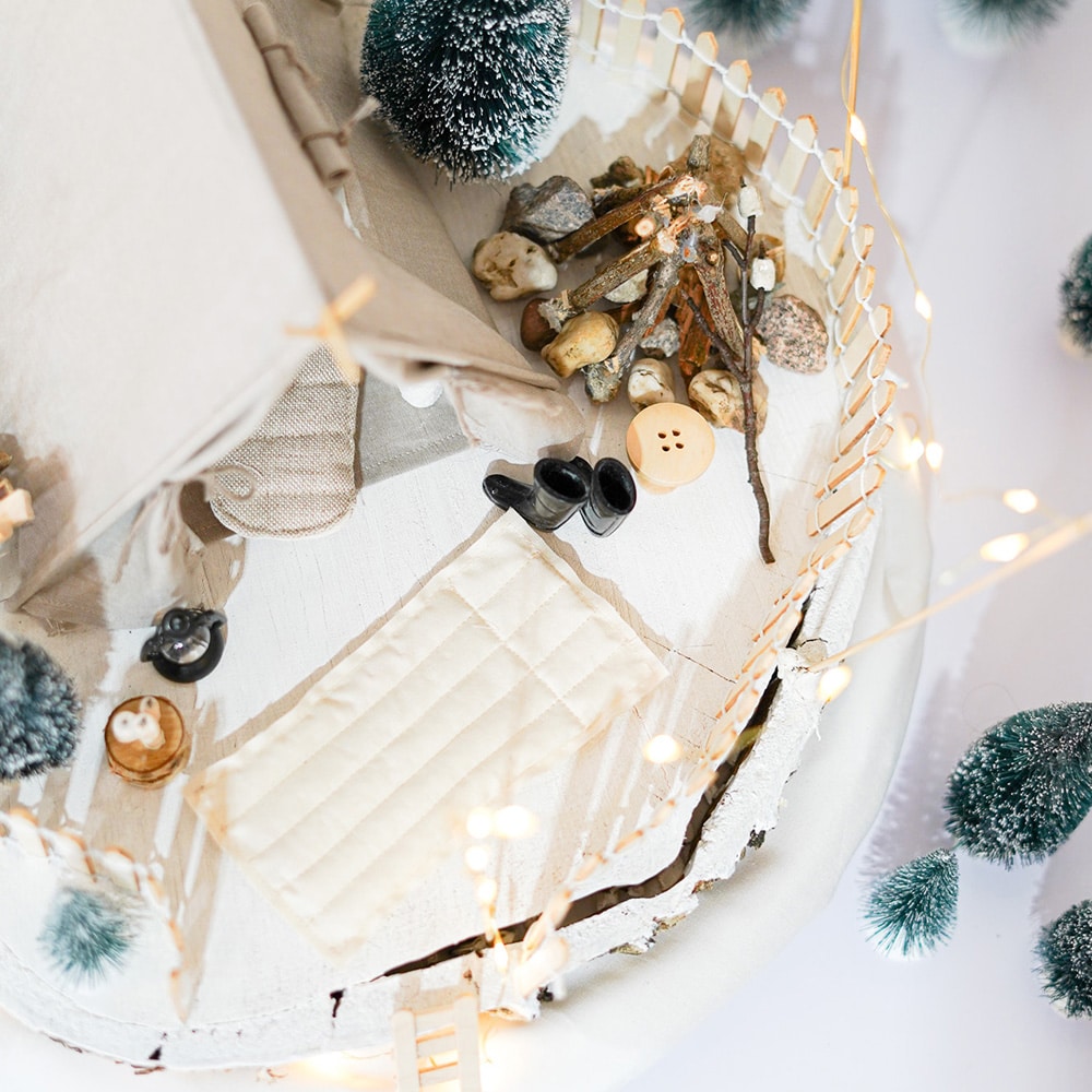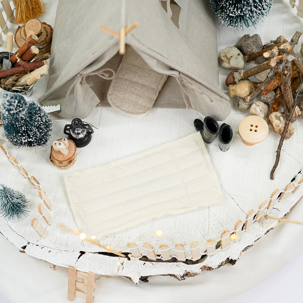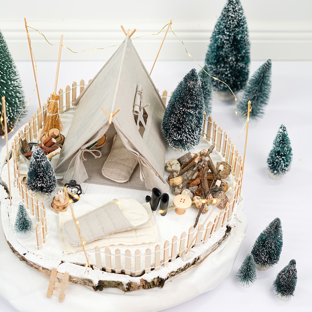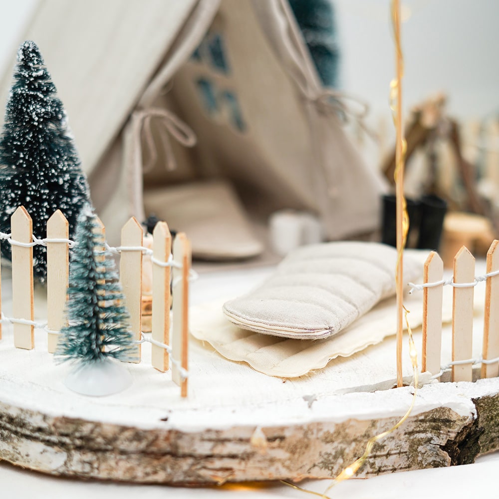 Perfekt für die DIY-Werkstatt: Mit Bastelhölzern zaubert ihr im Handumdrehen charmante Wichtel-Camping Möbel. Ob eine kleine Bank vor dem Zelt oder am Lagerfeuer.