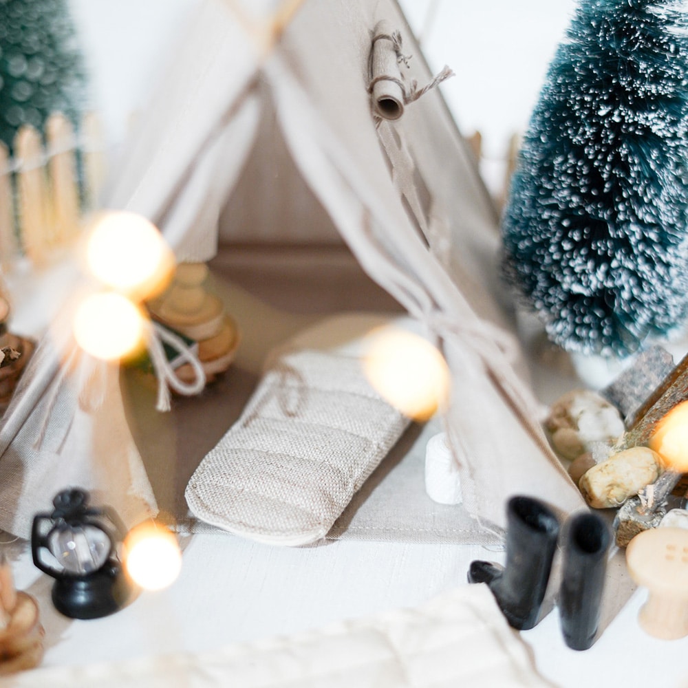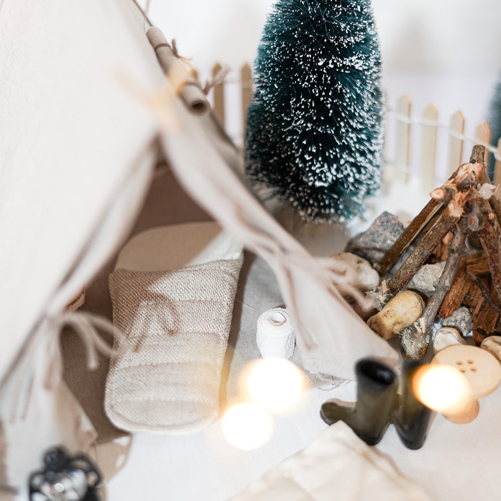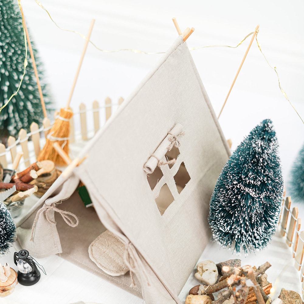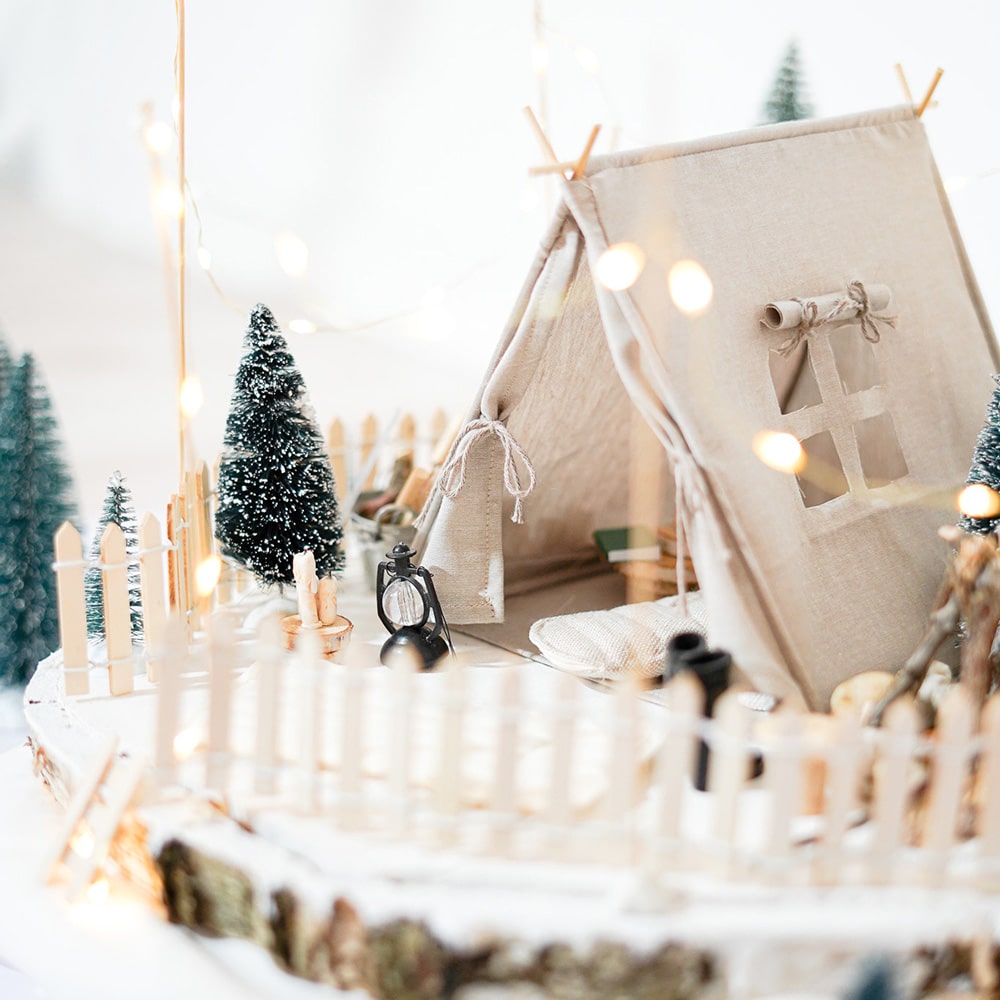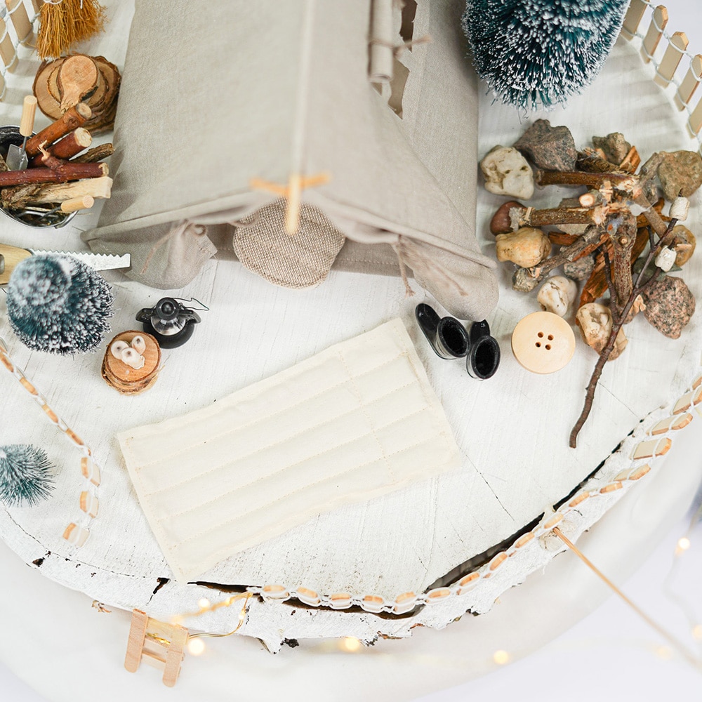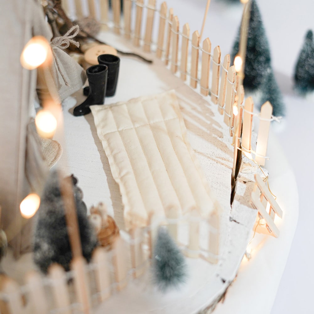 Perfekt für die DIY-Werkstatt: Mit Bastelhölzern zaubert ihr im Handumdrehen charmante Wichtel-Camping Möbel. Ob eine kleine Bank vor dem Zelt oder am Lagerfeuer.