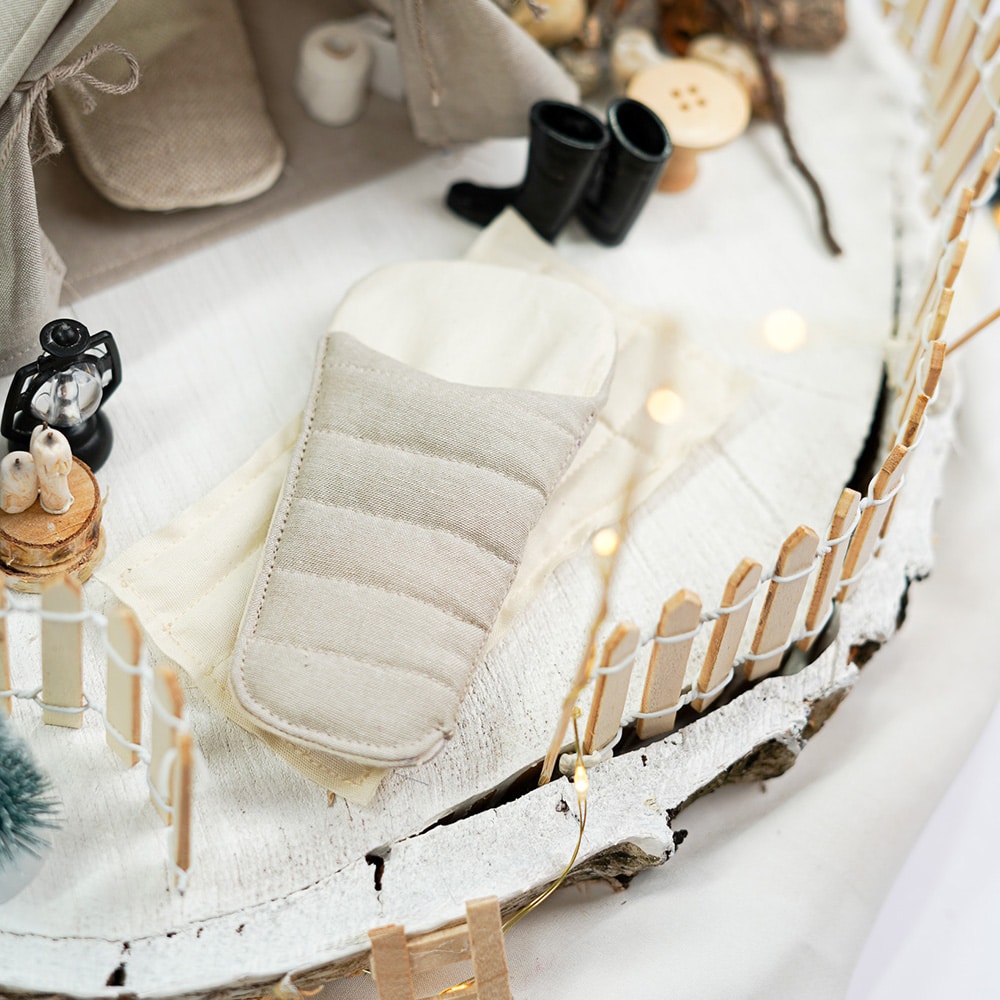 Die Lizenz zur gewerblichen Nutzung des Schnittmusters findet ihr hier: Gewerbelizenz Miniatur Zelt Luftmatratze Schlafsack